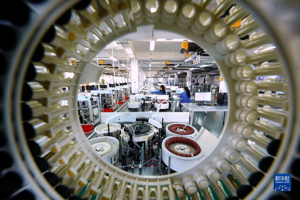 河北省迁安市一家生物科技企业的员工在生产线上工作(20211226日摄)。 新华社记者 牟宇 摄